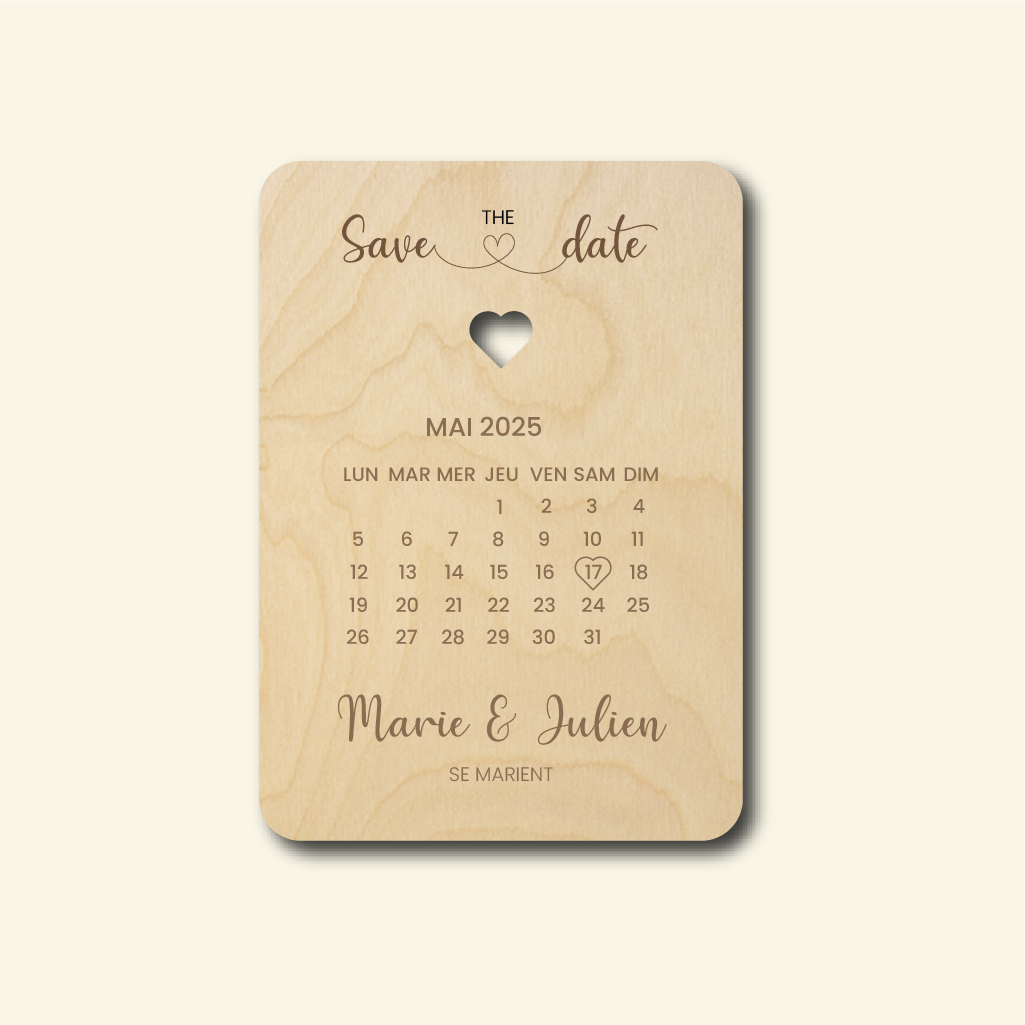 Profitez d'une annonce unique et mémorable avec notre carte "Save The Date" en bois.