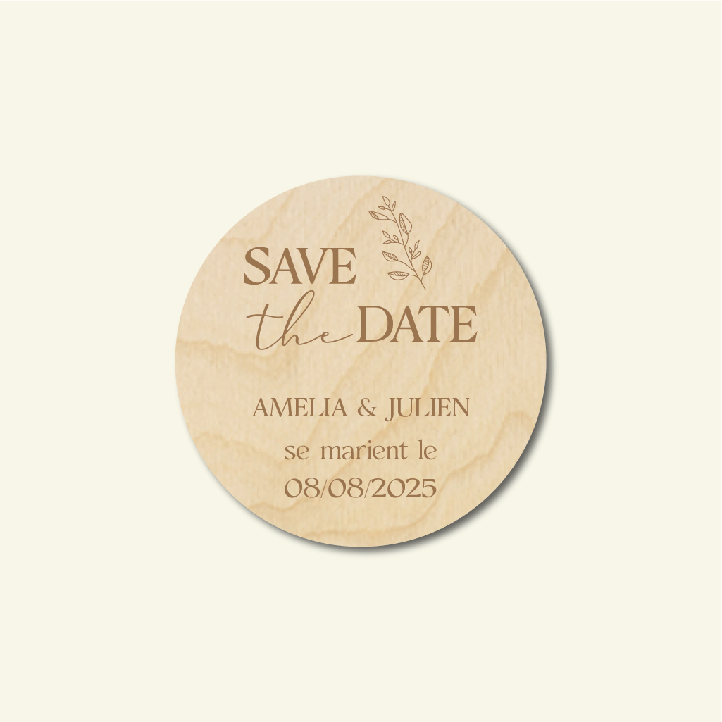 🌟 Annoncez votre mariage avec style et originalité grâce à ce magnet rond en bois naturel, parfait pour un "Save the Date" mémorable !