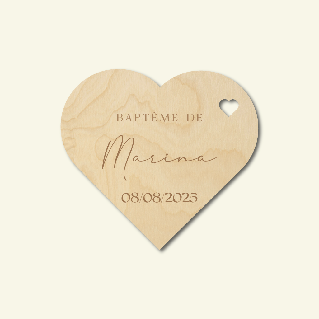 🌸 Remerciez vos invités avec un cadeau unique et plein d’amour grâce à ce magnet en bois en forme de cœur, spécialement conçu pour les baptêmes !