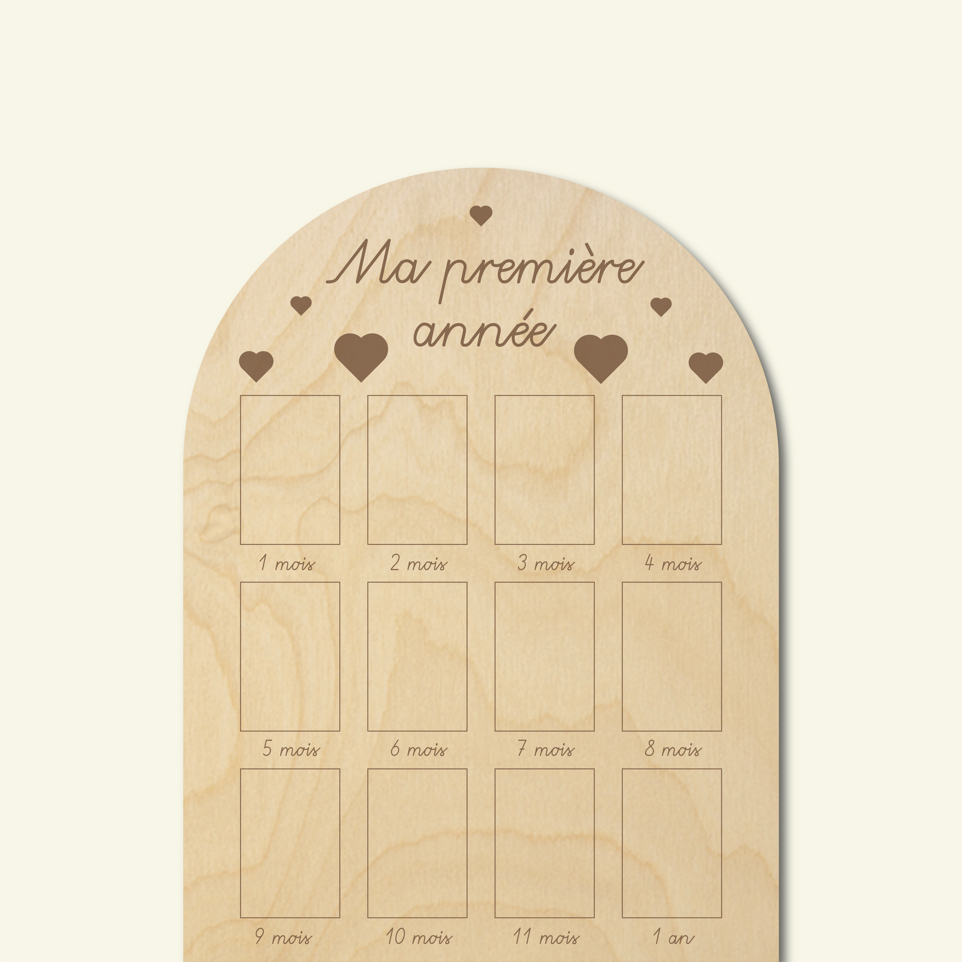 Capturez et immortalisez chaque moment précieux de la première année de votre enfant avec notre panneau en bois "Ma Première Année". Ce magnifique support personnalisé vous permet de coller une photo de votre bébé chaque mois, depuis la naissance jusqu'à son premier anniversaire.