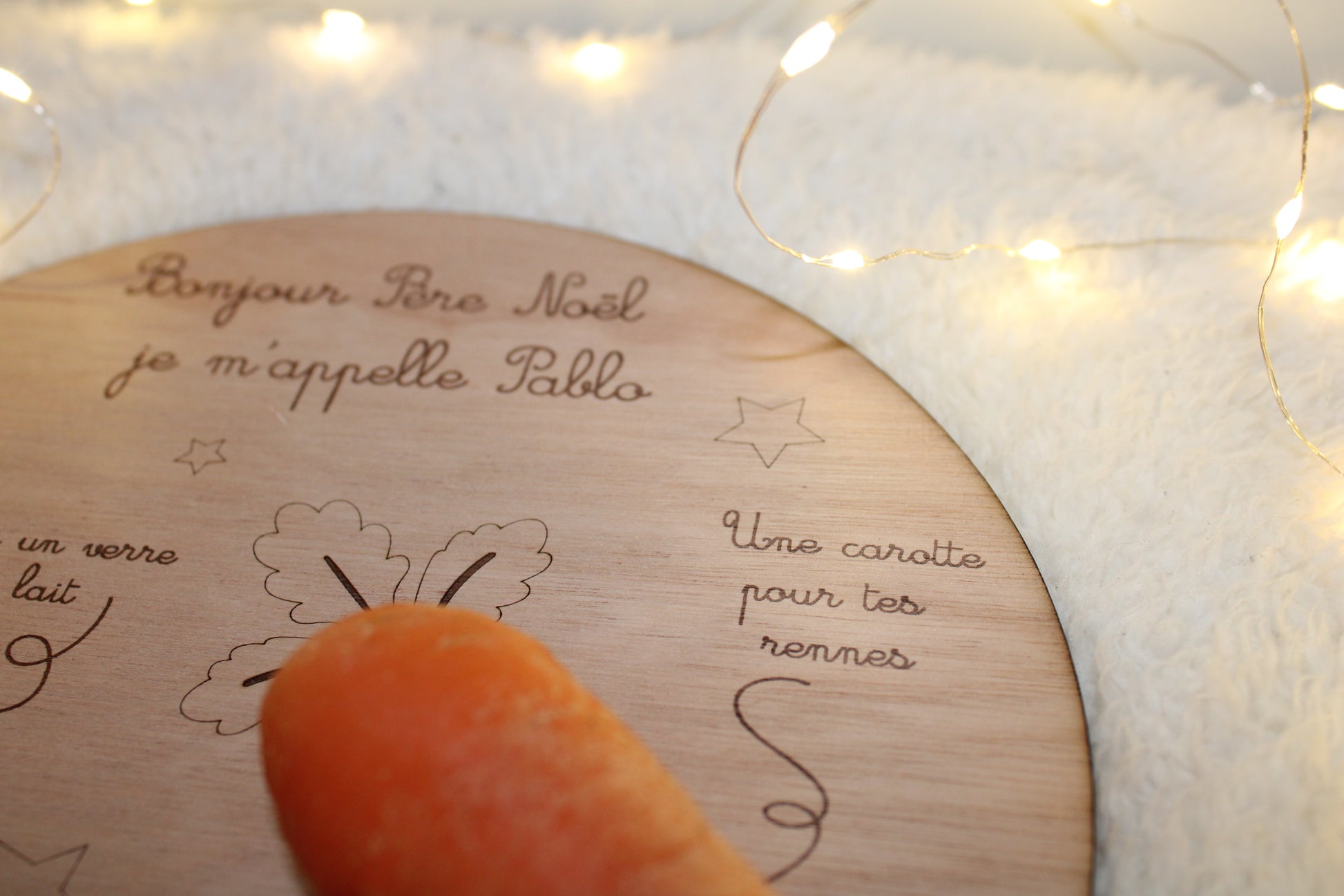 Notre assiette en bois personnalisée avec le prénom de votre enfant est idéale pour célébrer la fête avec émerveillement ! 🎄 Déposez-y un verre de lait, des biscuits pour Père Noël et une carotte pour ses rennes : un rituel magique à renouveler chaque année. 🌟