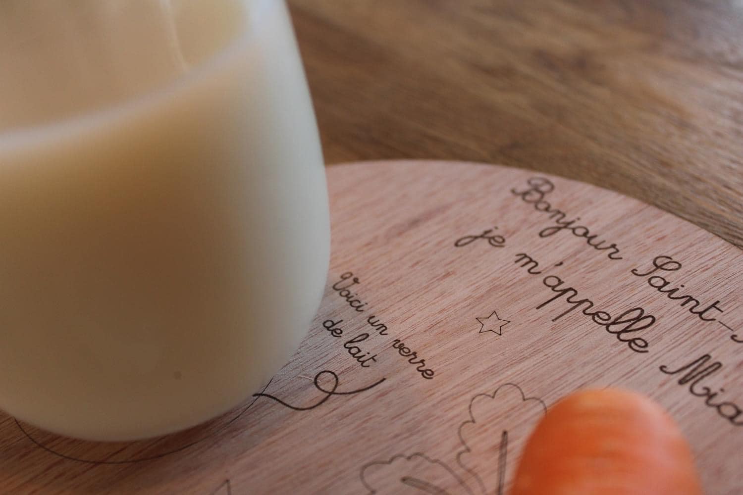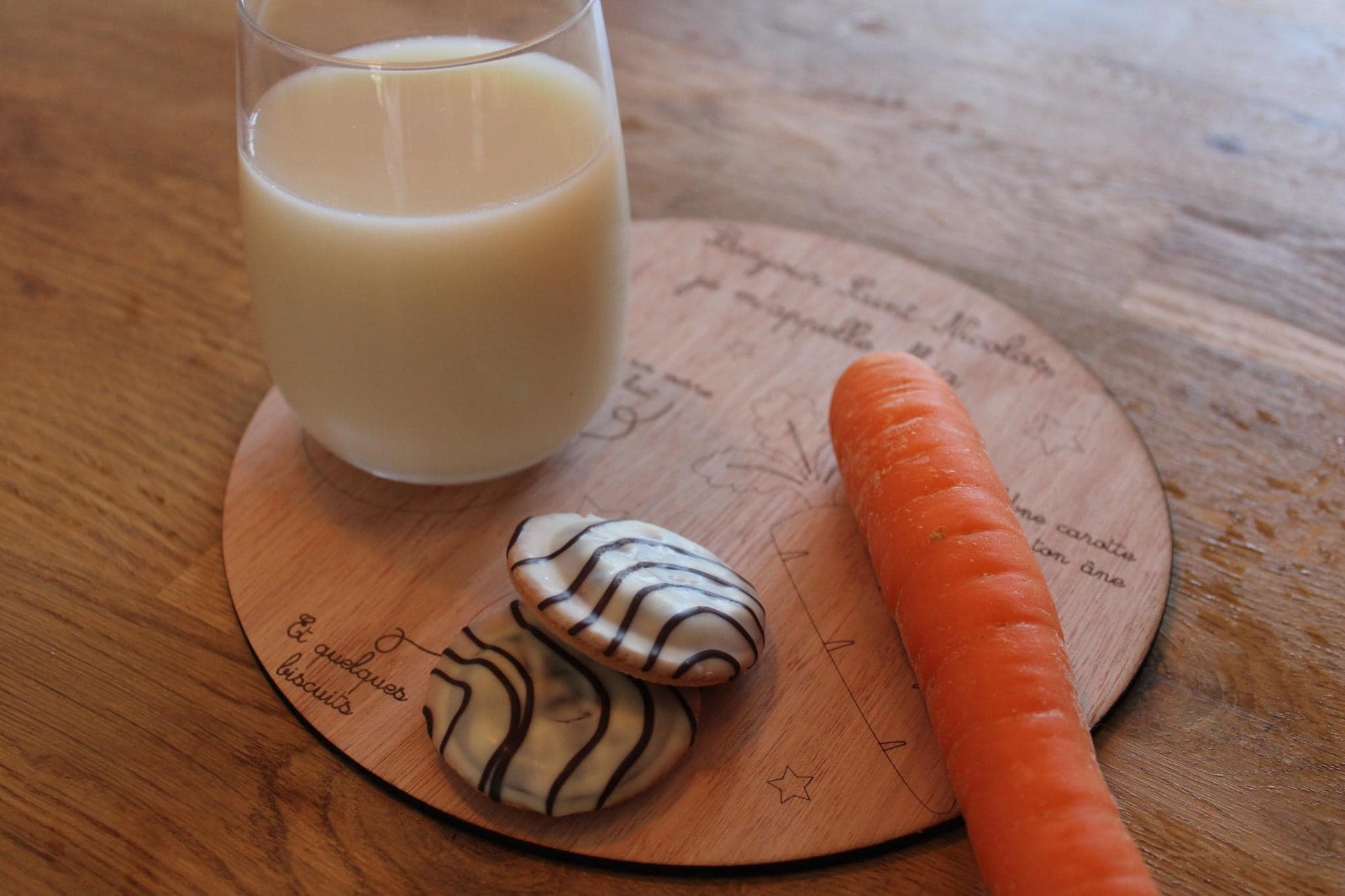 Notre assiette en bois personnalisée avec le prénom de votre enfant est idéale pour célébrer la fête avec émerveillement ! 🎄 Déposez-y un verre de lait, des biscuits pour Saint Nicolas et une carotte pour l’âne : un rituel magique à renouveler chaque année. 🌟
